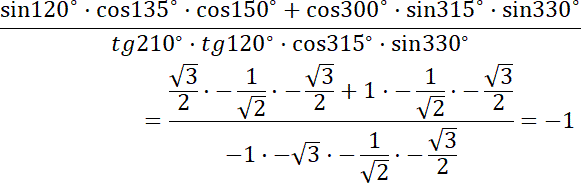 Zadanie polega na zastosowaniu kilkukrotnie wzorów redukcyjnych tak, aby otrzymać wartości funkcji trygonometrycznych dla kątów ostrych