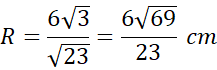 to boki trójkąta. Następnie skorzystaj ze wzorów na pole trójkąta z promieniami opisanym: