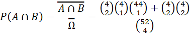 Częścią wspólną zdarzeń A i B będzie wylosowanie dwóch króli, oraz jednego lub dwa asy.