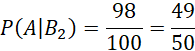 2% towarów tej firmy jest wadliwa, zatem 98% jest sprawna. Prawdopodobieństwo zakupienia towaru sprawnego spośród wszystkich od tej firmy wynosi więc: