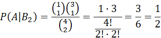 Po tym przełożeniu w pojemniku drugim znajduje się 1 kula biała i 3 czarne (łącznie 4 kule). Prawdopodobieństwo wylosowania kuli białej i czarnej przy losowaniu dwóch kul spośród wszystkich czterech, gdzie kolejność losowania nie gra roli wynosi: