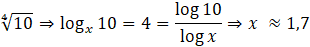 Zapisz wyrażenie w postaci logarytmu o nieznanej podstawie i wyznacz ją za pomocą tablicy logarytmów oraz wzoru na zamianę podstawy logarytmu.