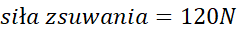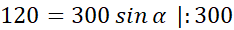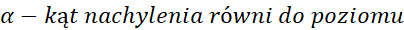 W tym zadaniu wyznacz wartość kąta, nachylenia α równi. Wiadomo, że na równi znajduje się ciało o ciężarze 300 N, na które działa siła równa 120 N wywołująca zsuwanie się ciała. Dla takiej równi nachylonej do poziomu pod kątem α i leżącego na niej ciała o ciężarze równym F dane są dwie siły działające na to ciało - siła, której wartość wynosi