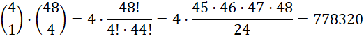 Spośród 52 kart wybierane jest 5 tak, aby był wśród nich maksymalnie 1 król. Wyznacz ilość możliwości takiego doboru kart.