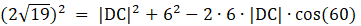 Teraz oblicz podstawę DC z twierdzenia cosinusów.