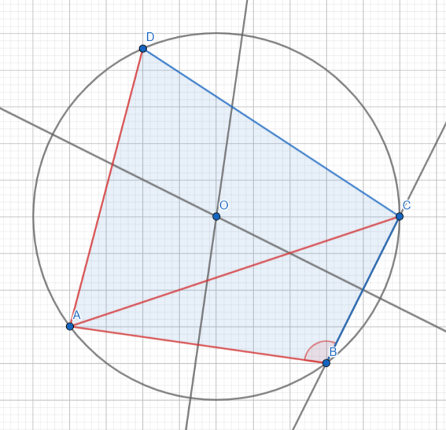 Wykonaj konstrukcyjnie rysunek czworokąta ABCD wpisanego w okrąg, jeżeli dane są boki AB i AD, przekątna AC i kąt B.