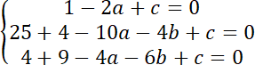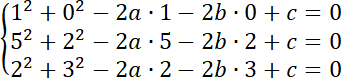 Podstaw kolejno współrzędne A, B, C do równania okręgu i stwórz układ równań: