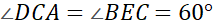 A trójkąt BCE jest trójkątem równobocznym z cechy kąt-kąt-kat, więc: