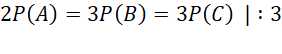 . Na początku uzależnij wszystkie zdarzenia od niewiadomej P(A), następnie oblicz prawdopodobieństwo zdarzeń A∩B, A∩C, B∩C. Potem wykorzystaj wzór
