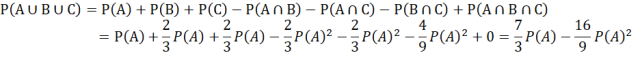 Uzależnij prawdopodobieństwo P(A ∪ B ∪ C) od P(A):