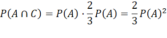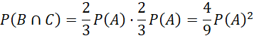 Oblicz prawdopodobieństwo A∩B, A∩C, B∩C: