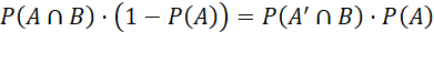 Udowodnij, że jeśli zdarzenia A i B spełniają podane warunki: P(B|A) = P(B|A’), P(A) > 0 i P(A’) > 0, to nie są zależne.