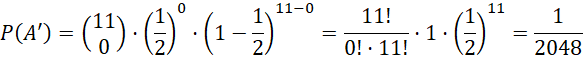 A’ – zdarzenie, w którym przy 11 rzutach, orzeł nie wypada ani razu
