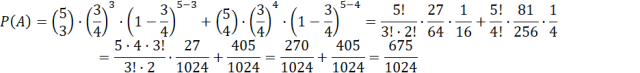 A – zdarzenie, w którym przy 5 rzutach, 3 lub 4 razy wypadła ścianka z liczbą różną od 1.
