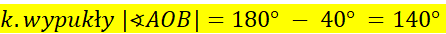 Dwusieczna dzieli kąt na dwie równe części. Oblicz miarę kątów ∢BAC + ∢ABC. Oblicz miarę kąta ∢AOB pamiętając, że suma kątów trójkąta wynosi 180°.