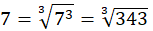 W tym zadaniu musisz zapisać liczbę a jako pierwiastek stopnia n, gdy: a = 7 i n = 3.
