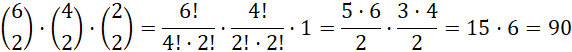 Spośród 6 osób wybierane są 3 pary. Przy każdej kolejnej, ilość osób dostępnych do dobrania zmniejsza się o 2. Prezentuje to działanie: