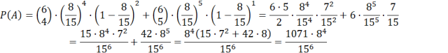 A – zdarzenie, w którym w 6 losowaniach dwóch kul z pudełka, 4 lub 5 razy weźmiesz dwie różne kule.