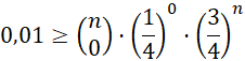 , gdzie p to prawdopodobieństwo pewnego zdarzenia, q to zdarzenie przeciwne do q, n to ilość wykonanych testów, a k to oczekiwana ilość wystąpień. Na koniec, aby obliczyć uzyskaną nierówność, musisz użyć kalkulatora i podnosić liczbę