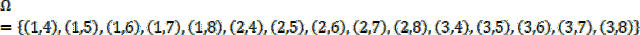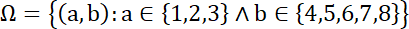 Wypisz wszystkie zdarzenia elementarne tego doświadczenia, następnie opisz symbolicznie przestrzeń zdarzeń elementarnych, jeśli dane są zbiory: A = {1, 2, 3}, B = {4, 5, 6, 7, 8}, tworzymy liczbę dwucyfrową, wybierając losowo cyfrę dziesiątek ze zbioru A i cyfrę jedności ze zbioru B.