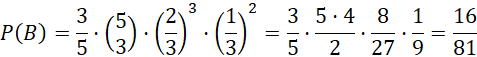 Oblicz prawdopodobieństwo zdarzenia B, skorzystaj z schematu Bernoulliego:
