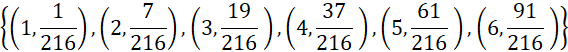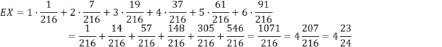 Wiedząc, że zmienna losowa X jest największą wartością na jednej z trzech kostek rzuconych naraz, określ rozkład zmiennej losowej X oraz jej EX.