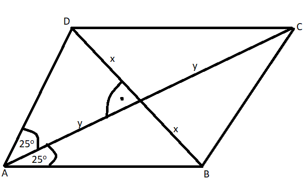 W tym zadaniu podaj, ile wynoszą przekątne rombu, którego pole ma wielkość 40, a kąt ostry tego rombu mierzy 50°. Wynik podaj z dokładnością do części dziesiętnych.