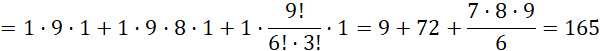 Jeśli na pierwszej pozycji będzie stała dwójka, na dowolną z 9 należy wstawić trójkę; lub dobrać po 1 miejscu dla dwójki i jedynki; lub z 9 wybrać 3 na trzy jedynki. We wszystkich sytuacjach pozostałe wolne miejsca należy obsadzić zerami. Ilość rozpatrywanych liczb dla tego przypadku wynosi więc: