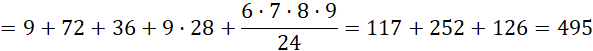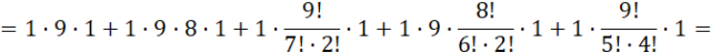 Jeśli na pierwszej pozycji będzie jedynka, na jedną z 9 pozostałych należy wstawić czwórkę; lub dobrać po 2 miejsca dla trójki i jedynki; lub dobrać 2 miejsca dla dwóch dwójek; lub dobrać 1 miejsce dla dwójki i 2 miejsca dla dwóch jedynek; lub dobrać 4 miejsca dla czterech jedynek. We wszystkich sytuacjach pozostałe wolne miejsca należy obsadzić zerami. Ilość rozpatrywanych liczb dla tego przypadku wynosi więc: