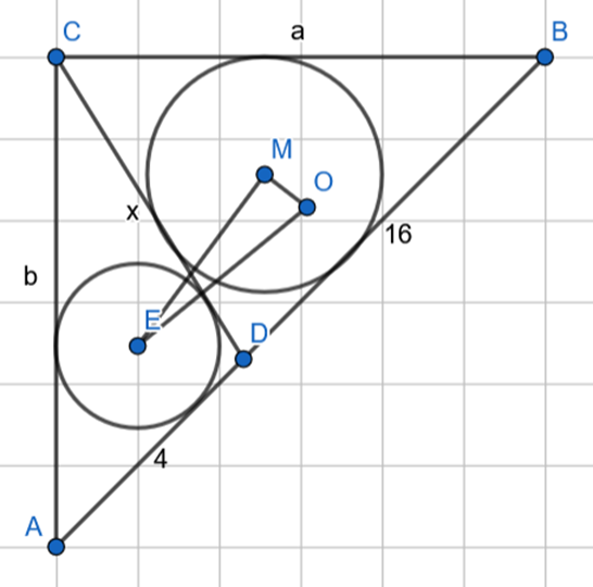 Wyznacz promienie okręgów wpisanych w trójkąty ADC i CDB oraz odległość między środkami tych okręgów, jeśli w trójkącie prostokątnym ABC wysokość CD dzieli przeciwprostokątną AB na odcinki o długościach 4 cm i 16 cm.