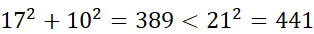 Boki trójkąta mają długość 21 cm, 17 cm, 10 cm. W tym zadaniu musisz sprawdzić, czy trójkąt jest ostrokątny, prostokątny czy rozwartokątny.