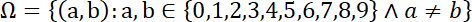 Zapisz symbolicznie przestrzeń zdarzeń elementarnych tego doświadczenia i określ liczbę zdarzeń elementarnych, jeśli losowanie odbywa się bez zwracania, jeśli ustalono współrzędne punktu P na płaszczyźnie w układzie współrzędnych w następujący sposób: ze zbioru wszystkich cyfr losujemy kolejno dwie cyfry. Pierwsza wylosowana cyfra oznacza pierwszą współrzędną punktu P, zaś druga cyfra - drugą współrzędną punktu P.