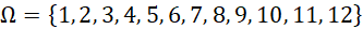 Zapisz zbiór zdarzeń elementarnych, w którym znajdą się liczby naturalne od 1 do 12.