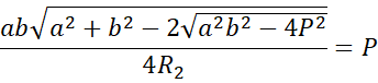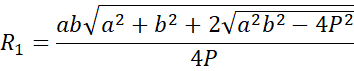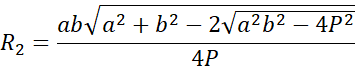 Oblicz promień R okręgu opisanego na tym trójkącie, jeśli dwa boki trójkąta o polu P mają długości