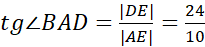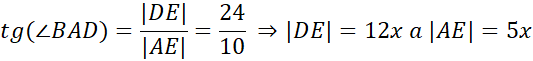 Niech AB||CD oraz |AD| = 13 cm. Poprowadzimy z wierzchołka C i D proste prostopadłe do odcinka |AB|, które przecinają ten bok kolejno w punktach E i F. Skorzystajmy w podaje wartości tangensa dla trójkąta AED: