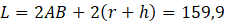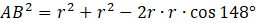 Oblicz obwód prostokąta ABCD, którego bok DC jest styczny do okręgu o promieniu r = 25, a kąt środkowy oparty na cięciwie AB ma miarę 148°. Wynik zaokrąglij do pierwszego miejsca po przecinku.