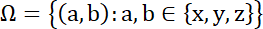Zapisz przestrzeń zdarzeń elementarnych i podaj liczbę zdarzeń, jeśli ze zbioru A= {x, y, z} losujemy ze zwracaniem kolejno trzy znaki i zapisujemy je w kolejności losowania, tworząc kod trzyliterowy.