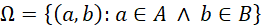 Zapisz zbiór zdarzeń elementarnych symbolicznie, czyli jako parę liczb a i b, które należą kolejno do zbiorów A i B.