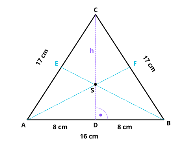 W tym zadaniu musisz obliczyć długości środkowych trójkąta, którego boki mają długość: 16 cm, 17 cm, 17 cm.