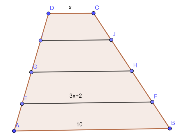 Skorzystaj z twierdzenia: W dowolnym trapezie taki odcinek, który łączy środki ramion, jest równoległy do podstaw tego trapezu, a jego długość jest połową długości podstaw.