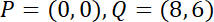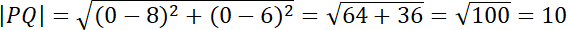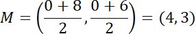 W połowie średnicy znajduje się środek okręgu, zatem wyznacz środek odcinka PQ: