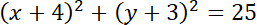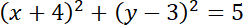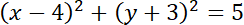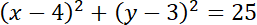 Równanie okręgu o środku M i promieniu 5 ma postać: