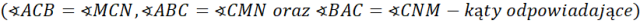 Trójkąt ABC i MNC są podobne z cechy KKK