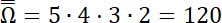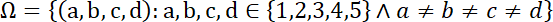 Wyznacz przestrzeń zdarzeń elementarnych tego doświadczenia losowego i określ liczbę tych zdarzeń, jeśli losowanie odbywa się bez zwracania, a ze zbioru cyfr {1, 2, 3, 4, 5} losujemy cztery razy jedną cyfrę i tworzymy liczbę czterocyfrową, w której cyfrą tysięcy, setek, dziesiątek i jedności są kolejno wylosowane cyfry.