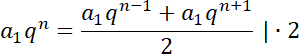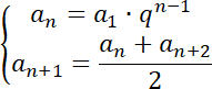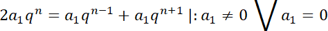 Stąd wykorzystując postać wyrazu ogólnego ciągu geometrycznego we własności średniej arytmetycznej dla wyrazów ciągu arytmetycznego: