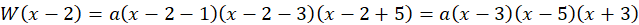 Wskaż pierwiastki wielomianu W(x - 2), wiedząc, że dla wielomianu W(x) liczby 1, 3 oraz -5 są jego pierwiastkami.