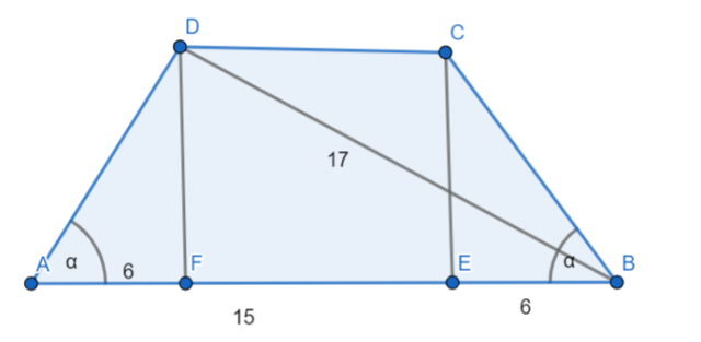 A teraz z trójkąta AFD wyznacz przeciwprostokątną – ramię trapezu.