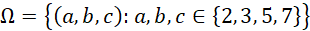 Przestrzeń zdarzeń elementarnych będzie zatem pewną trójką elementów, gdzie każdy z nich przybiera losową wartość ze zbioru {2, 3, 5, 7}. Zapisz tę informację symbolicznie.