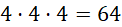 Przy każdym z 3 rzutów można otrzymać jeden z 4 elementów. Ilość możliwych kombinacji rzutów prezentuje więc iloczyn: