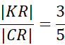 Oblicz długość wysokości trójkąta ABC z twierdzenia Pitagorasa. Znajdź trójkąty podobne i oblicz ich skalę podobieństwa, a następnie na jej podstawie oblicz długość odcinka KR.